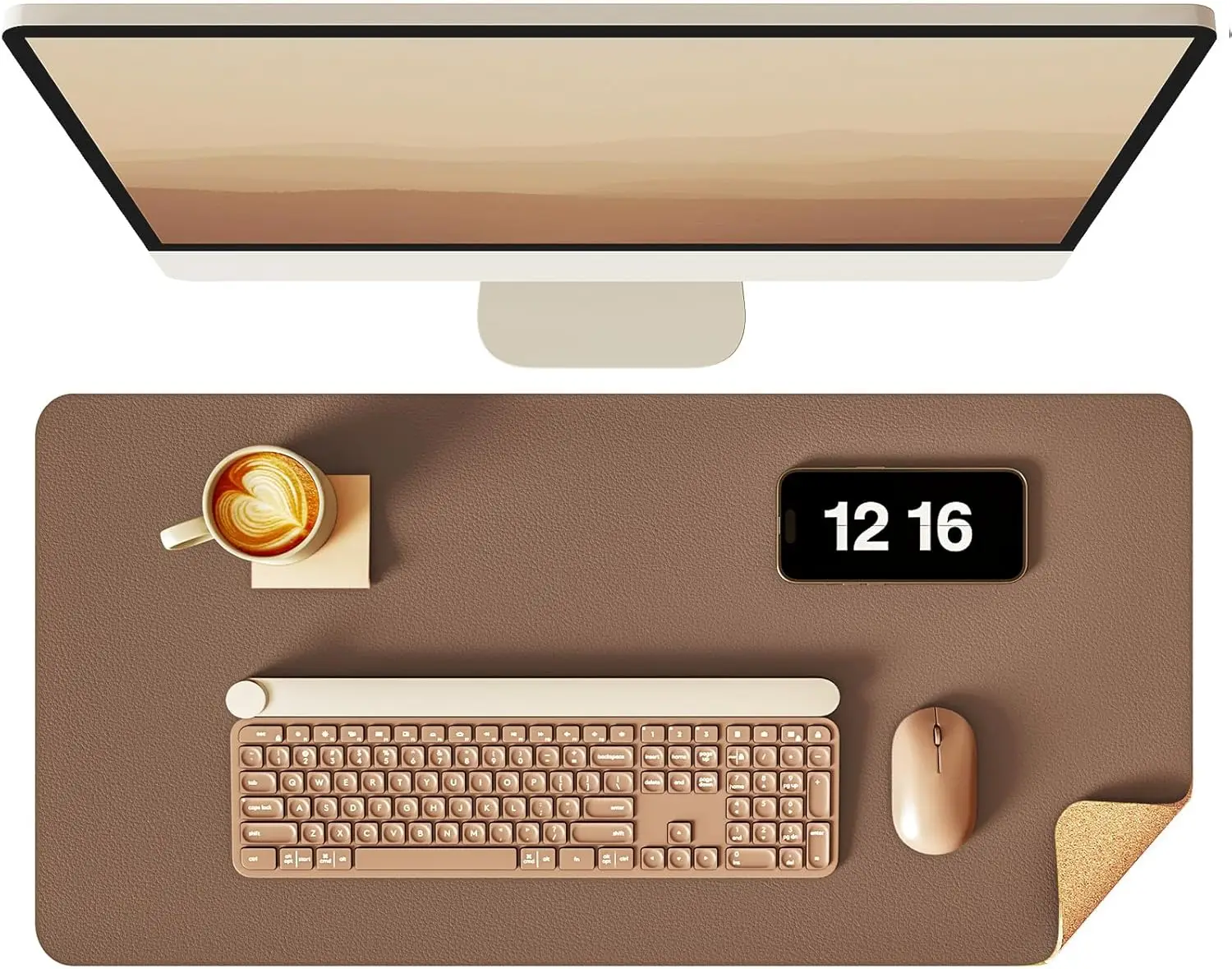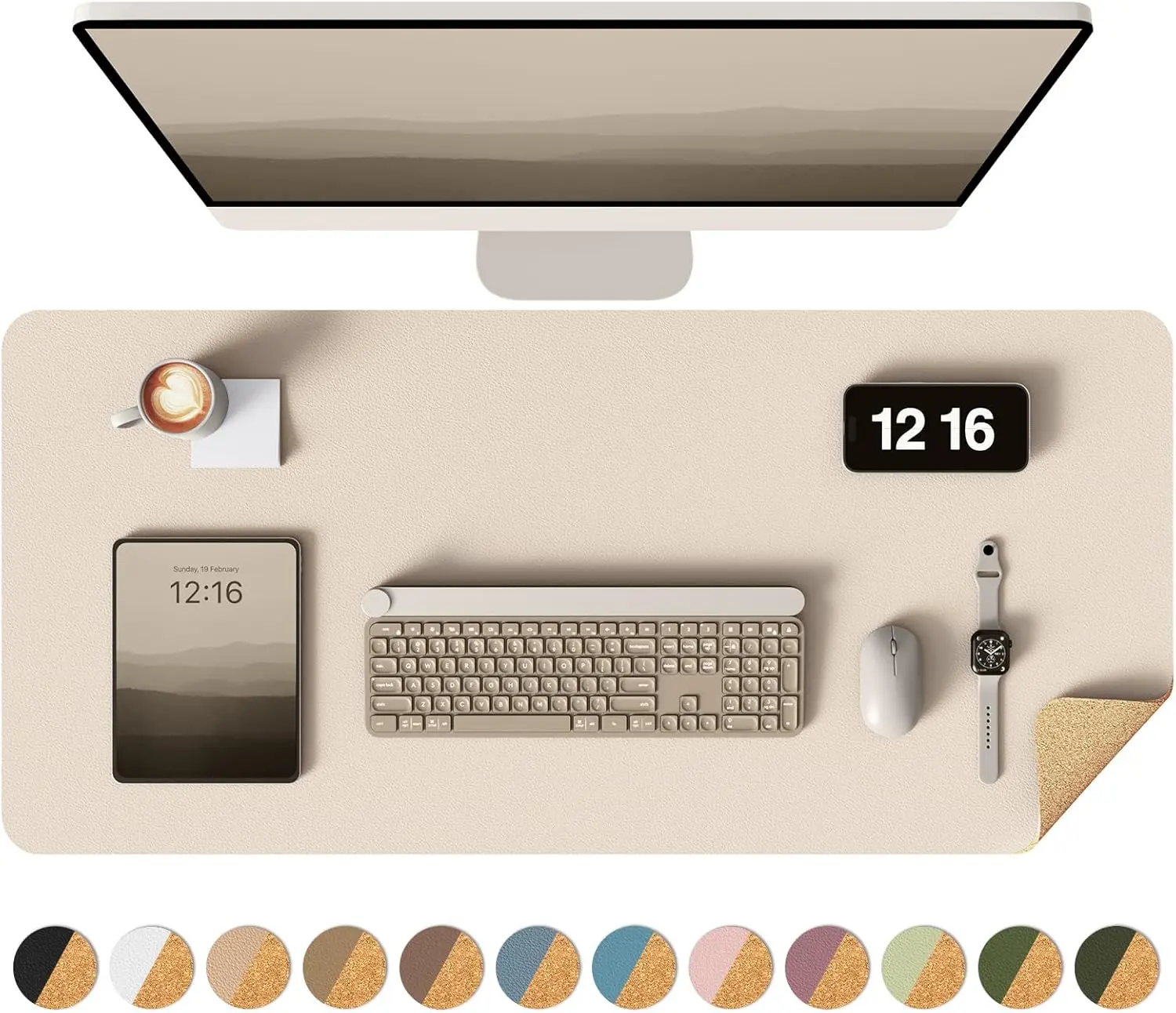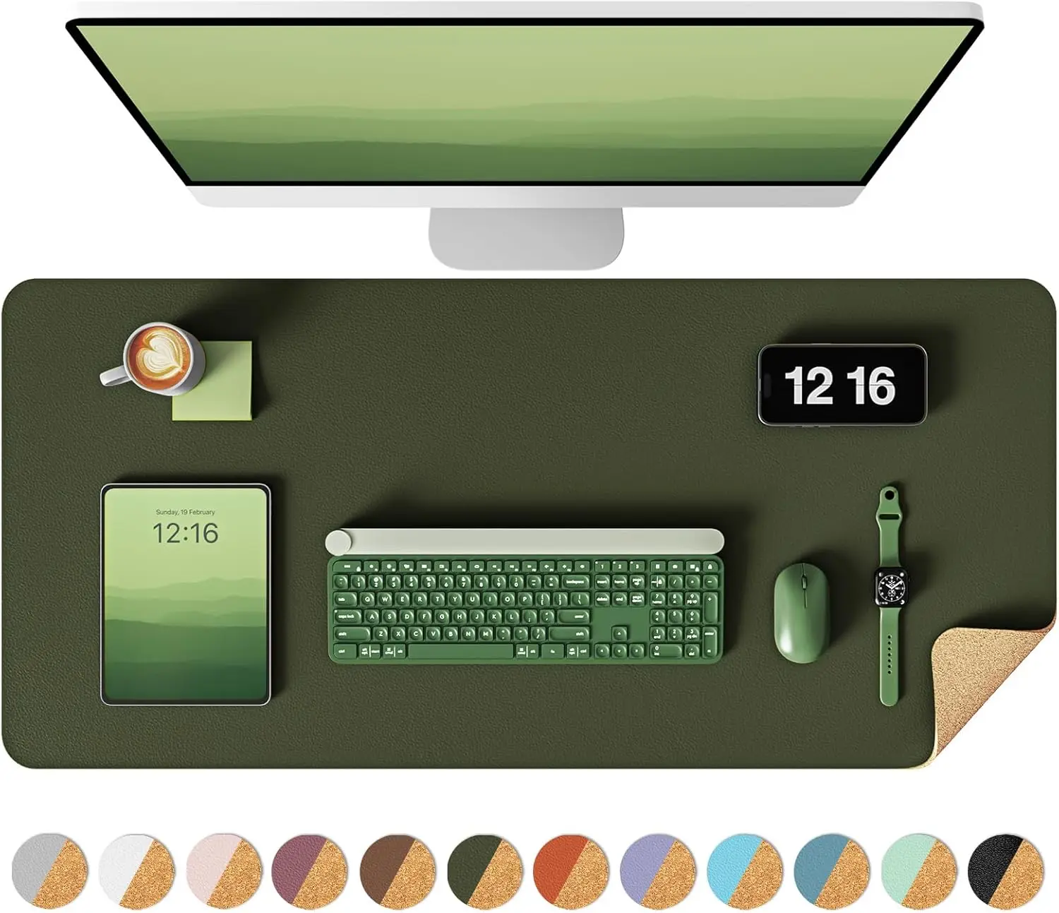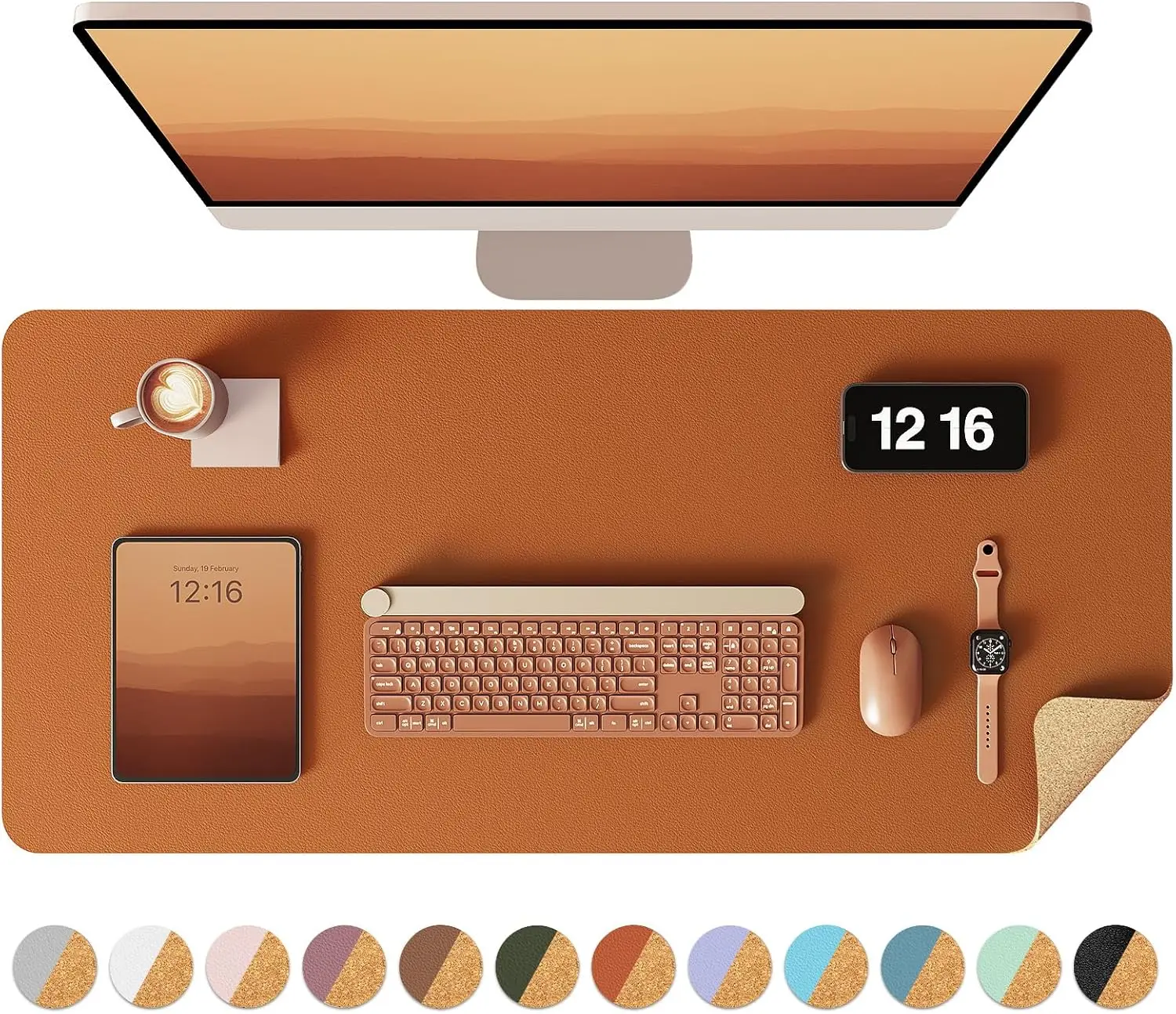 Double-Sided Desk Pad, Leather Desk Mat, Eco Cork Desk Pad Protector,Large Mouse Pad,Waterproof Desk Blotter for Office/Home